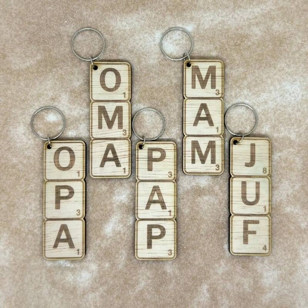 Gemaakt van 5mm dik berkenhout. Inclusief sleutelring.