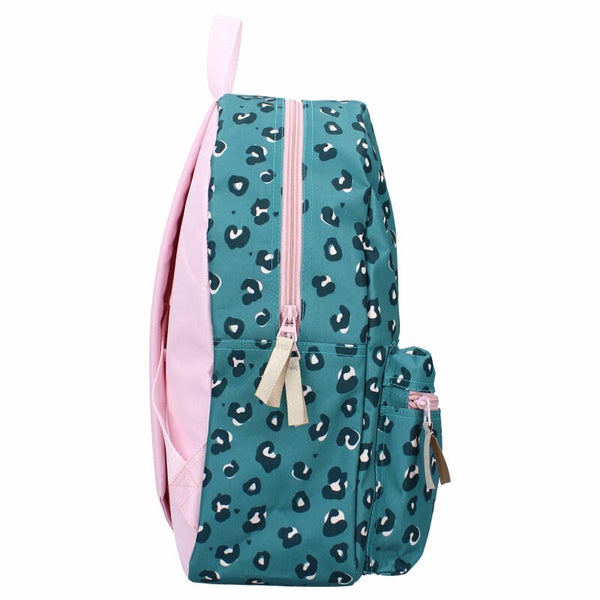 Dierenprintjes kunnen altijd! Deze rugzak met panterprint is een echte musthave voor elke meid. Deze Milky Kiss Young, Wild & Free rugzak heeft een groen/zwart panterprintje. De rugzak heeft een ruim hoofdvak met ritssluiting en een voorvakje met ritssluiting. Verder kan de rugzak makkelijk opgehangen worden met een ophanglus en heeft comfortabele schouderbanden die versteld kunnen worden.