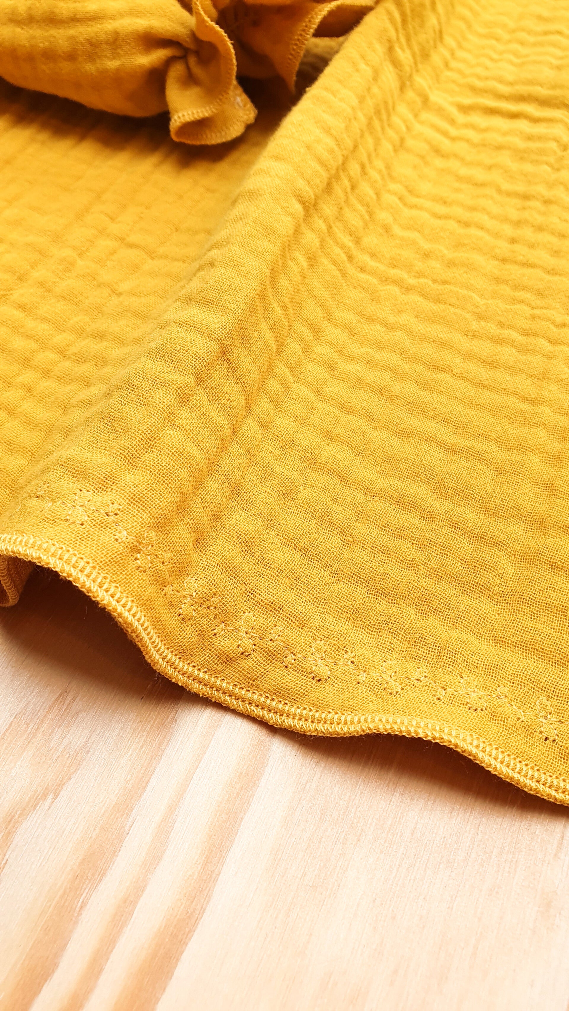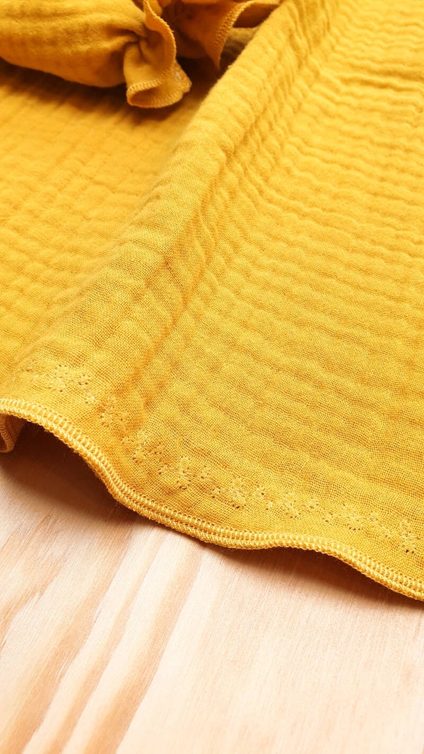 Prachtige blouse handgemaakt van een 100% katoenen hydrofielstof. De blouse heeft ballonmouwen, een gerimpelde neklijn en is aan de onderkant afgewerkt met een geborduurd sierstiksel.