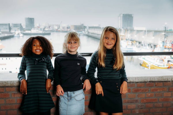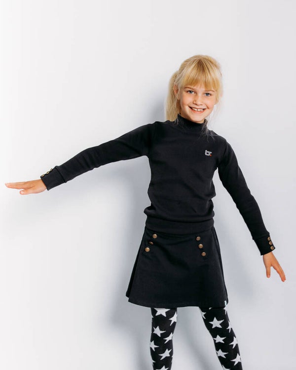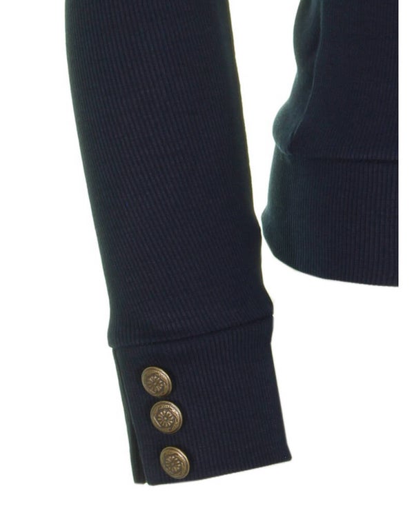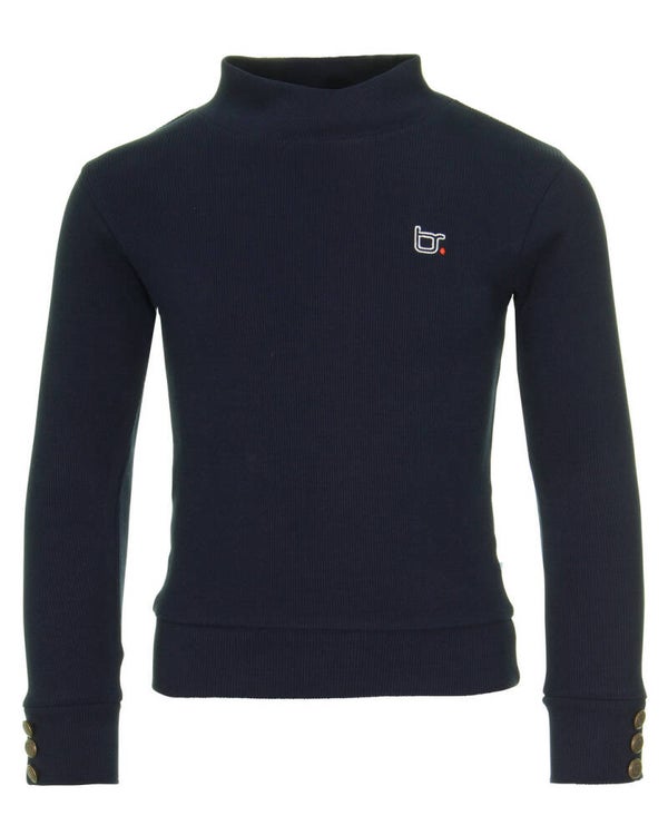 Aansluitende top met opstaande kraag in een fijne rib kwaliteit. Op de boorden van de mouw zitten aan beide kanten koperkleurige knopen. Een mooi detail is het logo in embroidery op de borst.