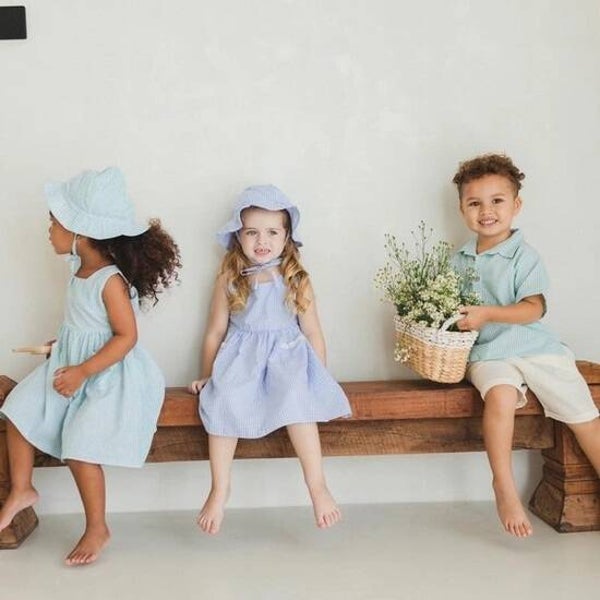 Superleuk jurkje in baby blue. De jurkjes van het merk CindyxHanna zijn handgemaakt en van 100% katoen.