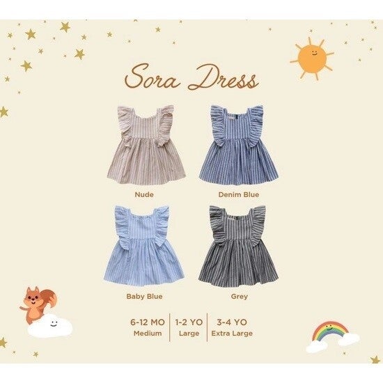 Het jurkje is verkrijgbaar in maat: 1-2 jaar (86-92) en 3-4 jaar (98-104)